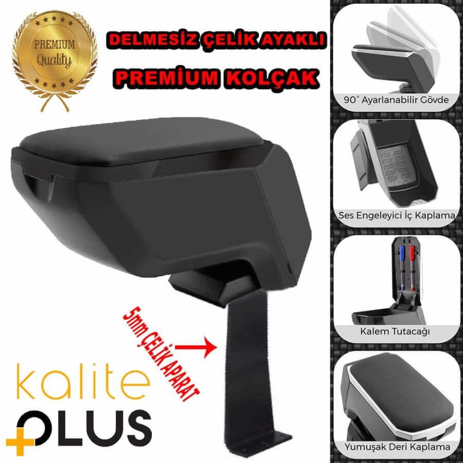 Avantajları; Aracınız için piyasada üretilen kolçak konsolları ya da bu araca takılan üniversal kolçaklar orta konsol delinip üzerine monte edildiğinden zamanla konsolu da yerinden oynatıyor. Zamanla vidaları gevşeyen piyasa ürünleri ilk kullanımdan itibaren sallanmalara ve gıcırdamalara sebep olmaktadır. İmalatını yaptığımız KalitePlus Kolçağımız bu problemi tamamen ortadan kaldırmıştır. Çünkü konsola monte edilmiyor. Tamamen metal aksama takılıyor. Gayet kullanışlı bir üründür. Anlatıldığı gibi emniyet kemeri, koltuk mekanizması ne de el frenini etkilemiyor. Arkadaki bardaklığı dahi kullanabilirsiniz. Yer kaplamıyor. Araca özel tasarlanması büyük bir avantajdır. Hiçbir delme işlemine gerek kalmadan iki vidayla aracınızda belirli olan deliklere kolayca montaj yapabiliyorsunuz.